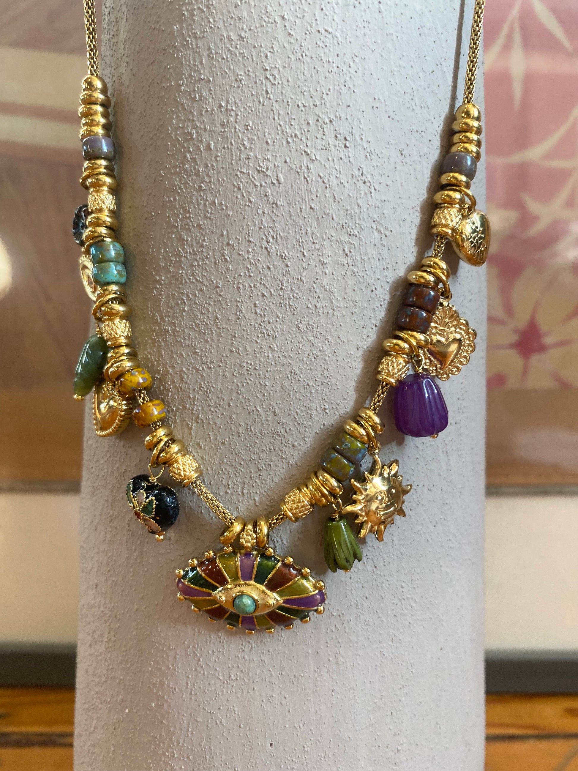 Franchement, tu vas adorer ce collier. C’est exactement le genre de bijou qui fait toute la différence dans une tenue sans en faire trop. Les pampilles sont toutes uniques, super bien définies, avec de petites touches violettes, vertes et dorées qui attrapent la lumière juste comme il faut.