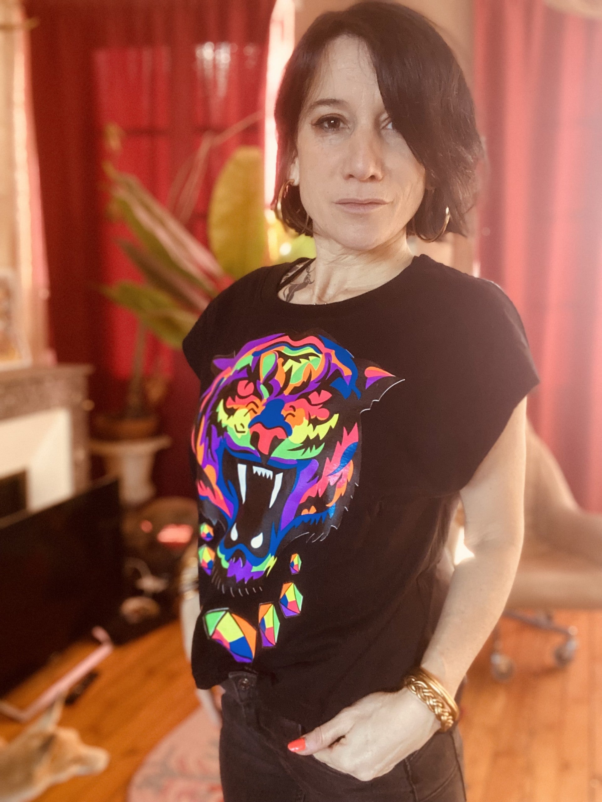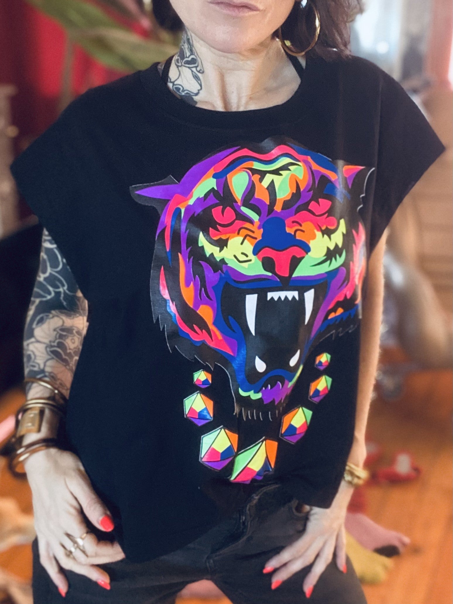 Top Femme Noir Motif Tigre Fluo – Coupe Fluide et Confortable