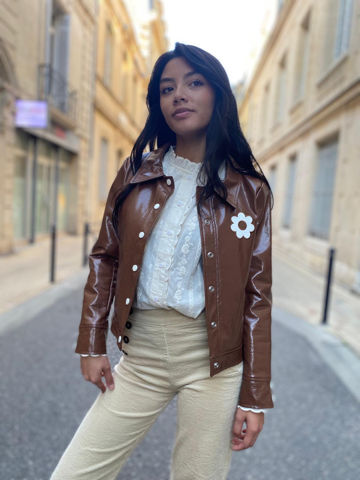 Adoptez un style rétro irrésistible avec notre veste vinyle marron Hippocampe, une pièce inspirée de l’esthétique iconique des années 60. Avec sa coupe structurée et sa finition brillante, elle allie parfaitement vintage chic et modernité. Son vinyle de haute qualité apporte une allure audacieuse tout en offrant confort et durabilité au quotidien.